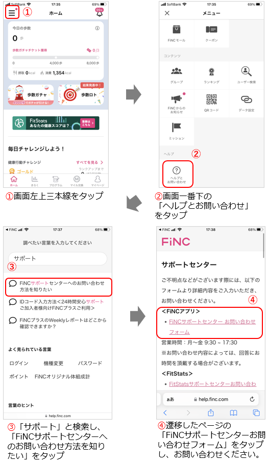 ※スマホアプリ内からは以下手順にてお問い合わせいただけます。